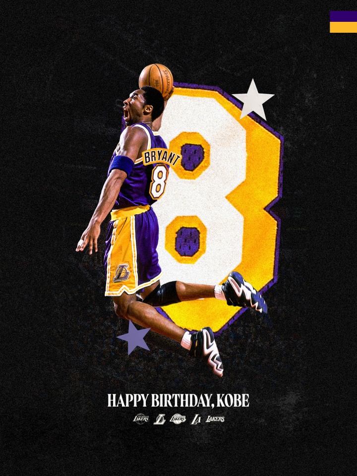 1、湖人官方:“洛杉矶之心,生日快乐,科比 💜”